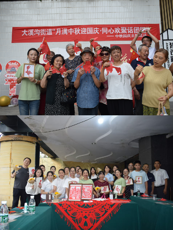 9月28日及29日,迎中秋庆国庆的非遗剪纸活动也在,在渝中区大溪沟社区和会展国际社区双双开展。渝中区大溪沟社区的老人们和会展国际社区的居民巧手翻飞,以剪纸承载岁月记忆,传递中秋团圆与家国情怀,在传统技艺中共度温馨双节,凝聚浓浓邻里情。